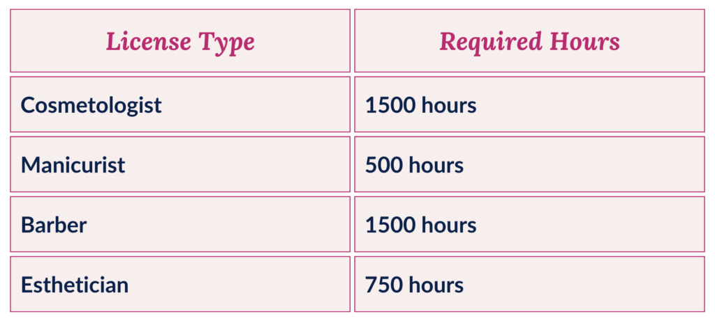 - Must have completed the required minimum practical working hours from a state-approved cosmetology school.